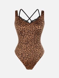1. Lace Neckline: The lace neckline and deep V-neck create a faux two-piece design;