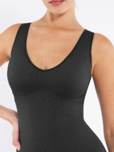 2. Double-layered Chest with Removable Padding: Prevents see-through and nipple outlines, eliminating the need for a bra. Light support provided by the chest’s underband.