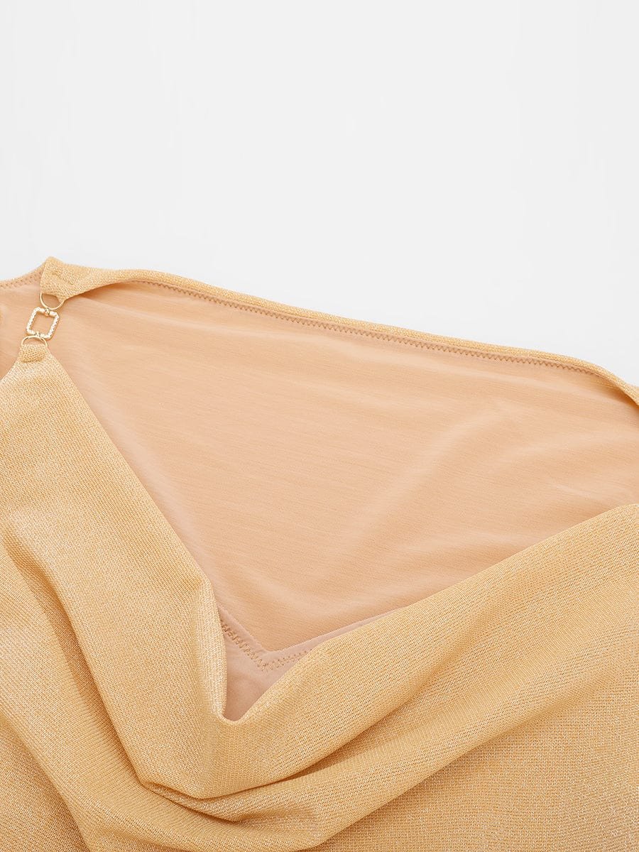 2. Built-in body shaping mesh: Double-layer structure: The surface gold and silver silk fabric is fashionable for outer wear, and the inner thin mesh is lightly wrapped for shaping, fashionable and exquisite;