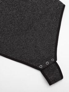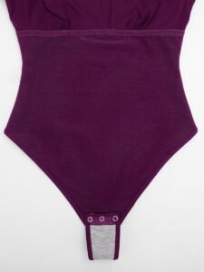 Embrace sophistication with our draped neck bodysuit featuring a built-in bra and thong snap for effortless allure.