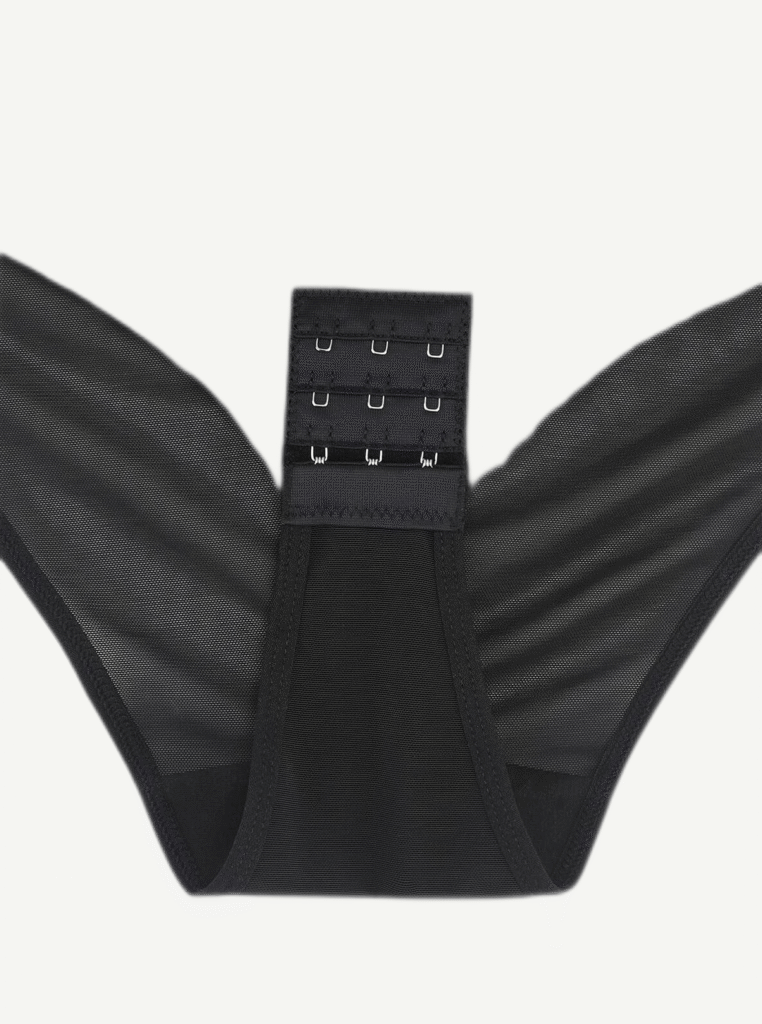5. Crotch hook-and-eye closure design makes for convenient lavatory visits;