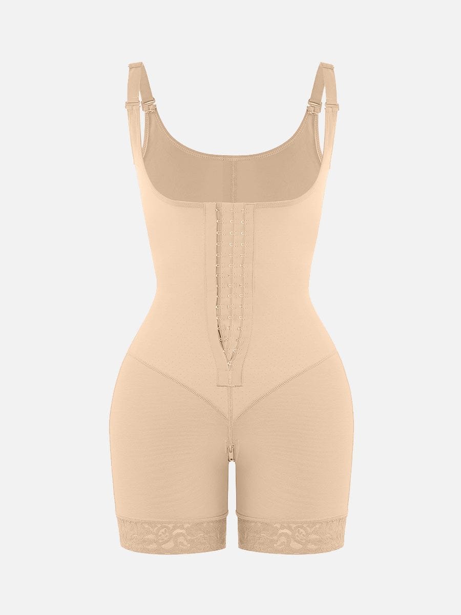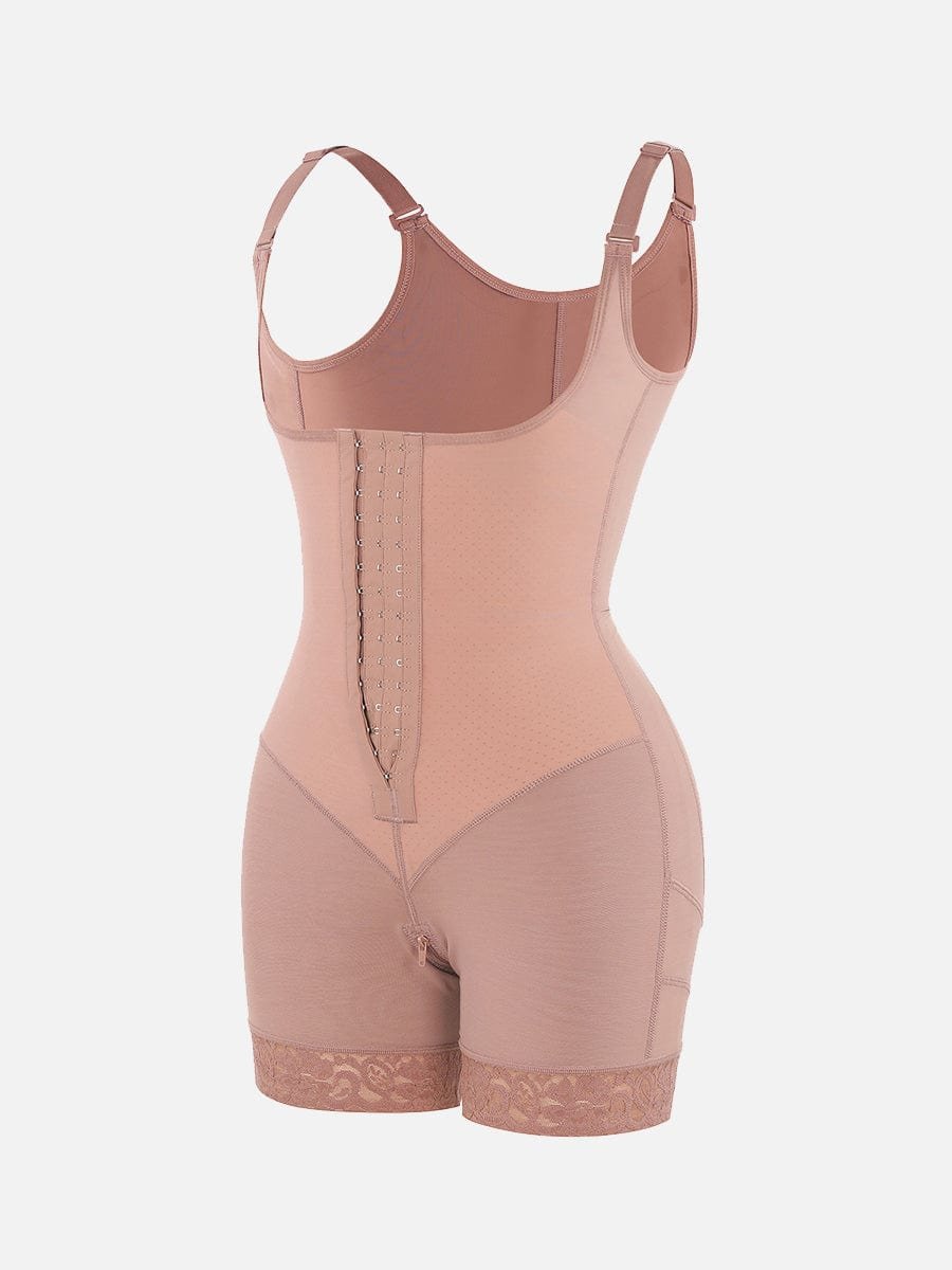 7. Three rows of adjustable hook and eye closure.