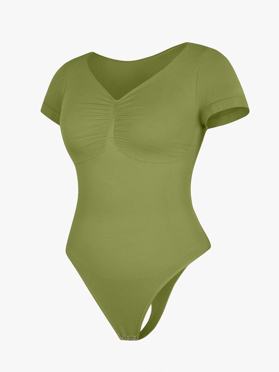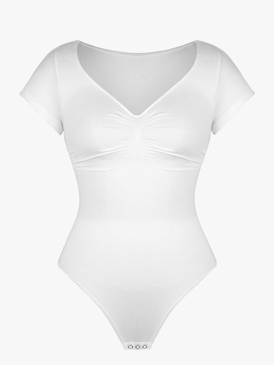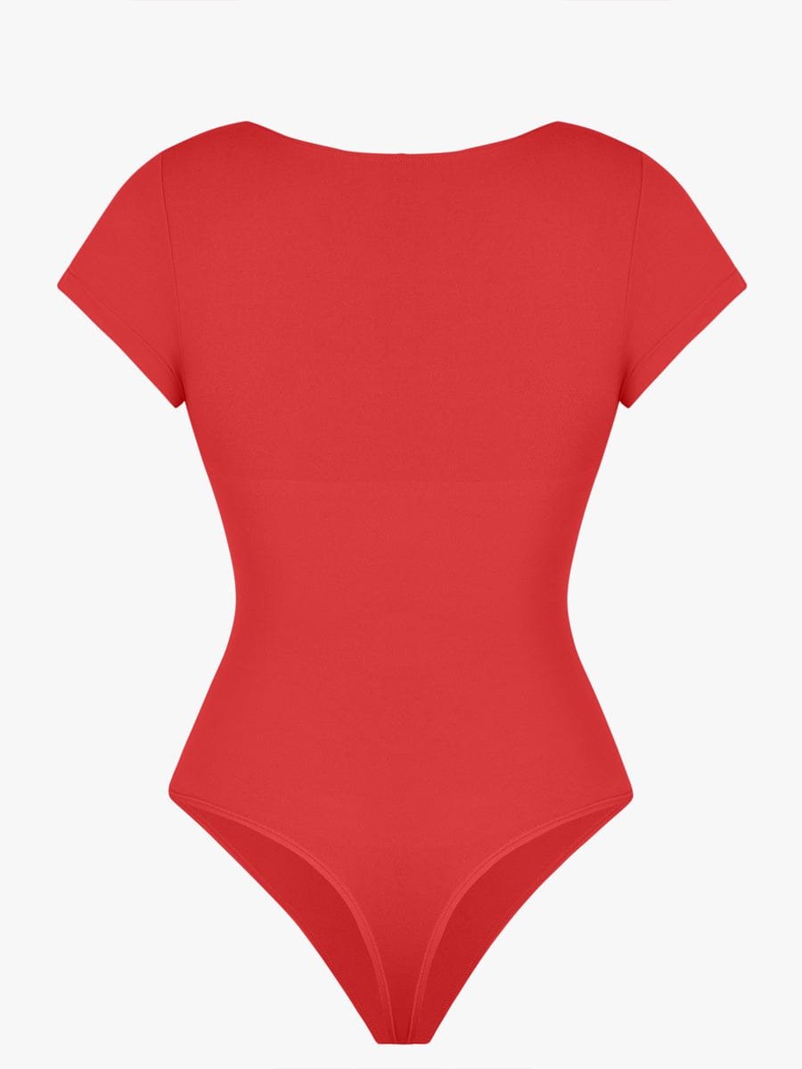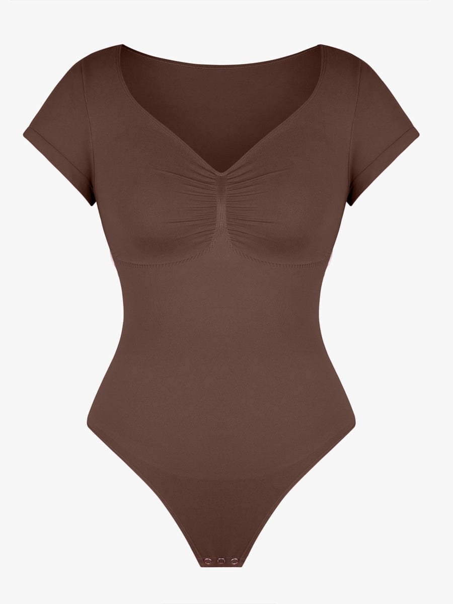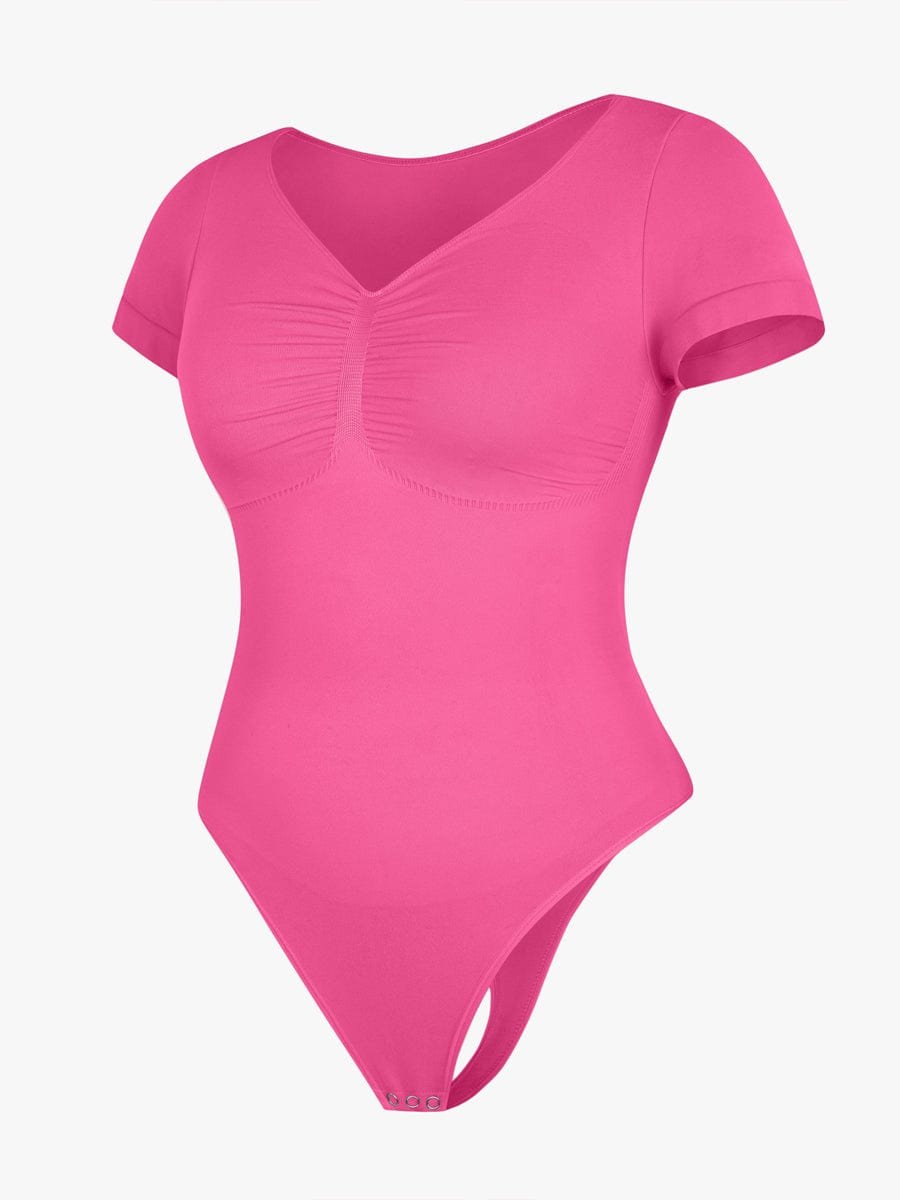 This thong bodysuit enhances your curves with bust support, tummy control, and a sleek diamond neckline—perfect for effortless, stylish layering.