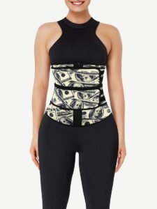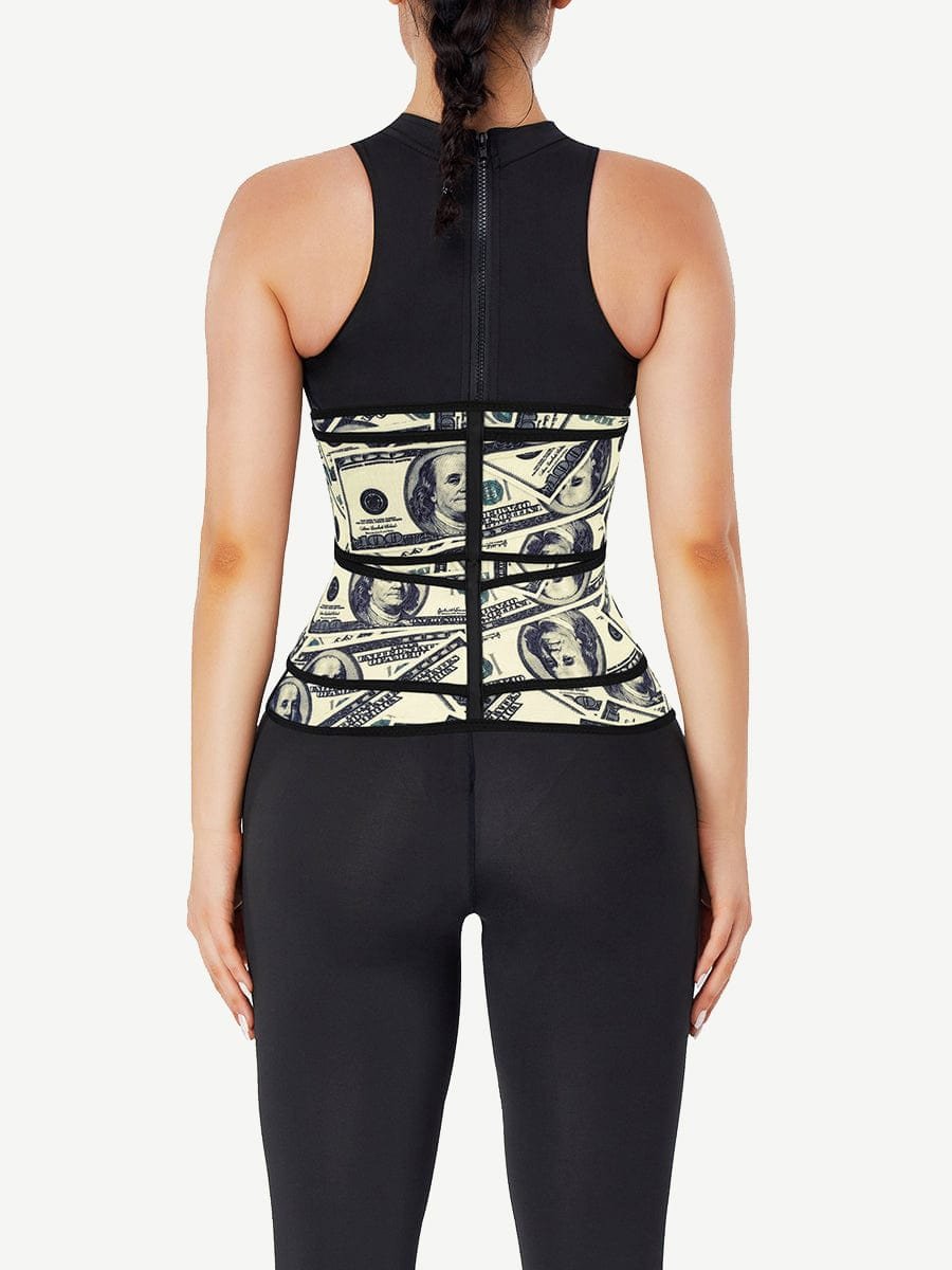 Elevate your style and support with our chic double-belt waist trainer featuring a unique dollar pattern.