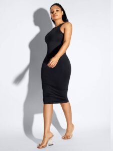 Experience all-day comfort and sleek style with our backless shaper dress.
