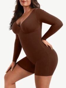 1. This ultra-versatile long-sleeve bodysuit is simultaneously tight-fitting, functional, and stylish.
