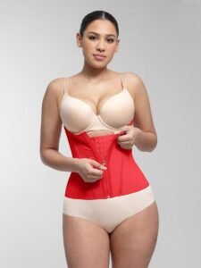 1. The upper hem of the girdle is short in front and long in back, and the U-shaped breast support can shrink the accessory breasts and at the same time reduce the fat on the back;