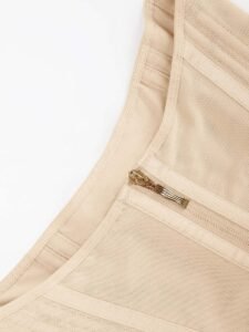 3. Two layers of compression on the abdomen, effectively tightening the abdomen; the inner layer has a front and center button design, which is adjustable, and the outer zipper design is more concise and traceless;