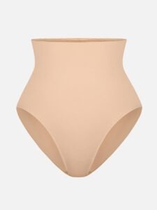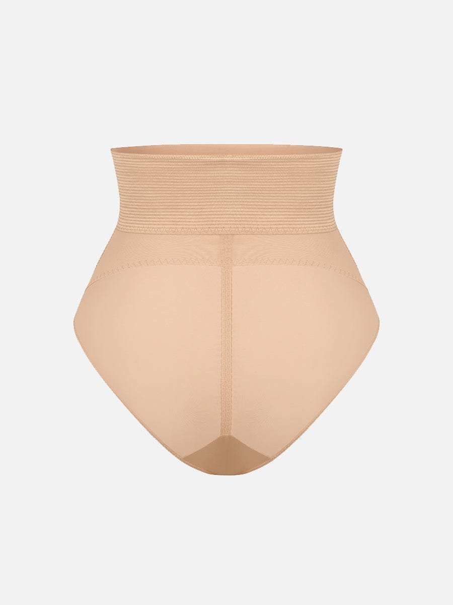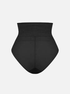 1. Waist and Abdomen Shaping: Built-in extra-wide elastic at the waist and abdomen, with shapewear mesh at the lower abdomen to effectively flatten the tummy.