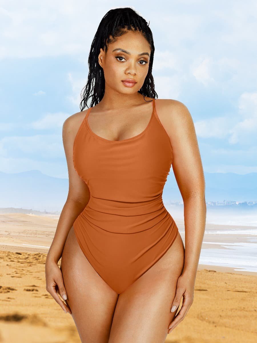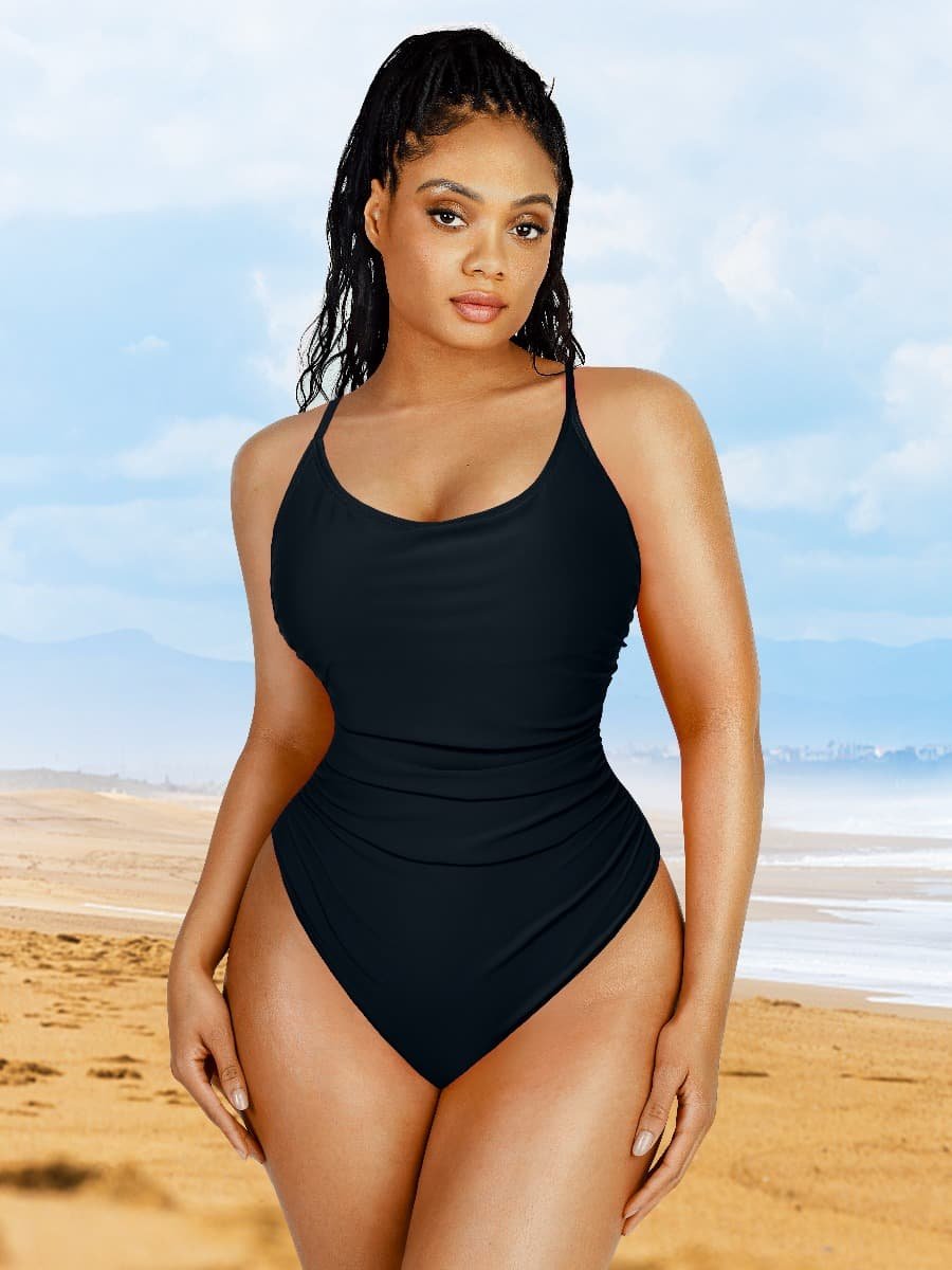 3. This swimsuit has built-in slimming compression with the elastic tulle cutout in the tummy to control abdomen.