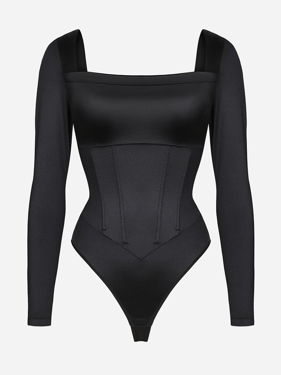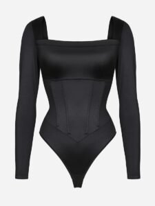 Wear this bodysuit with a built-in corset to get the perfect body-hugging shape; the retro square neck design elongates your neck line and exposes your sexy shoulders and neck, and it also comes with detachable cups for easy wear.