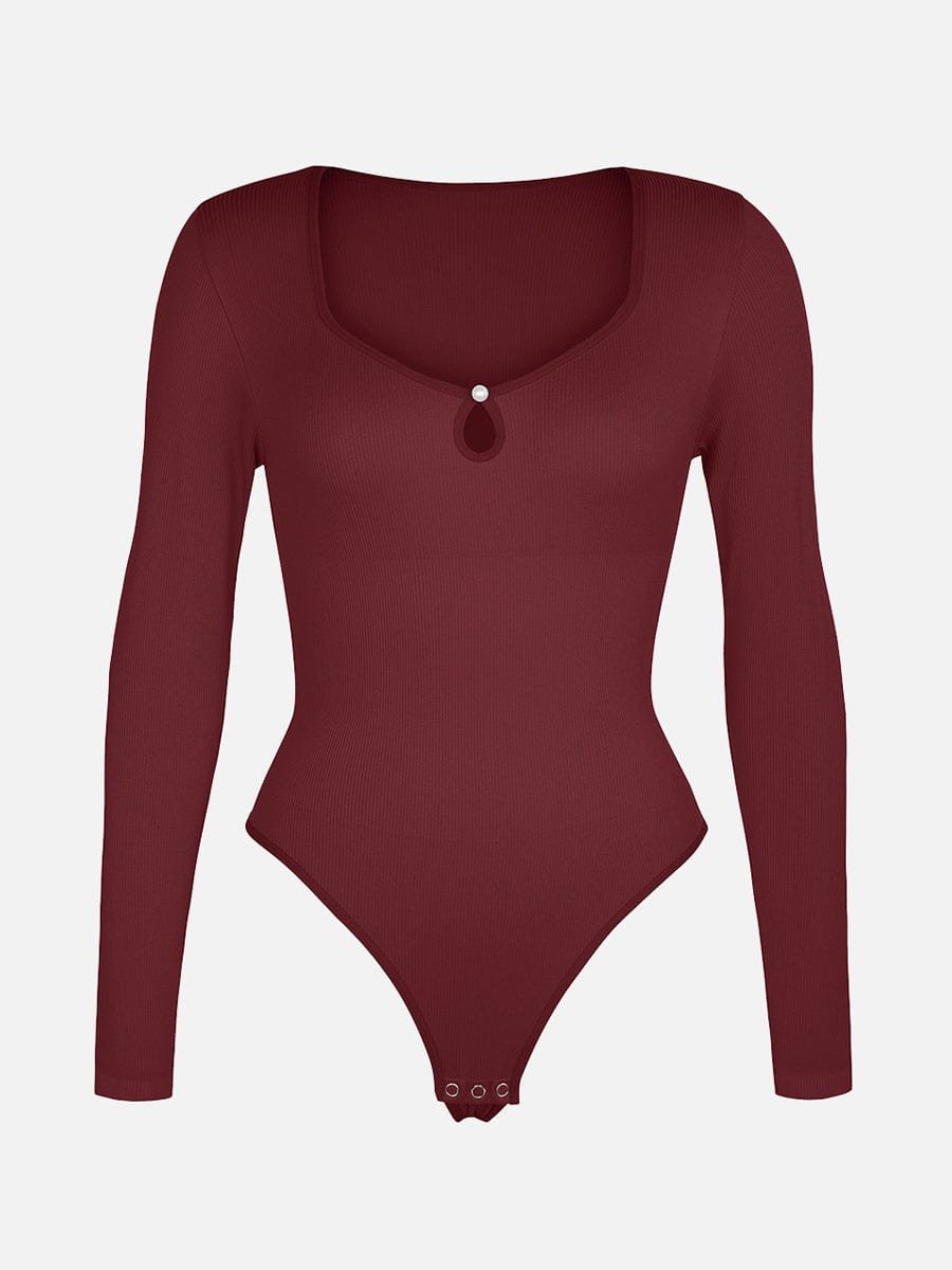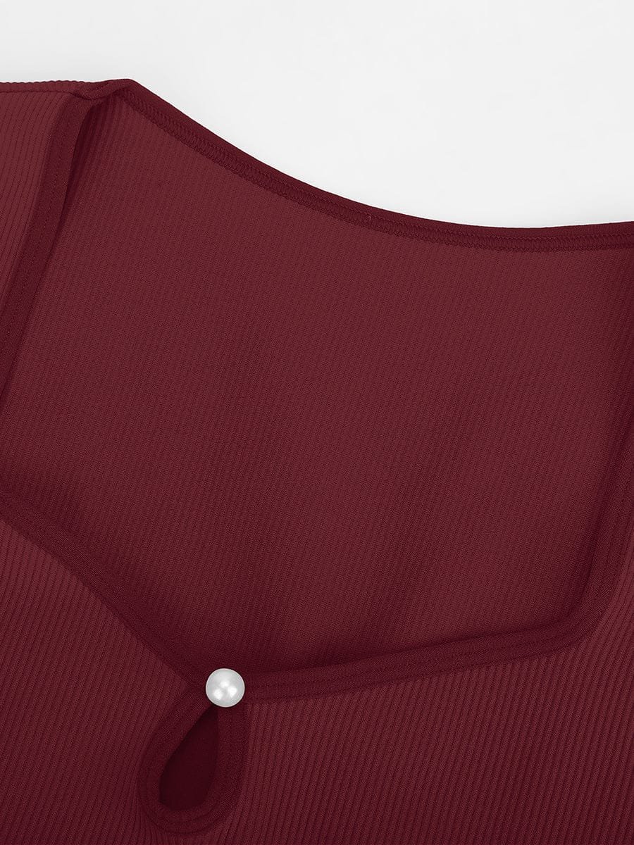 3. Sexy hollow low round neck: reveal beautiful clavicle, hollow neckline + pearl button embellishment, modify and lengthen the neck visual effect;