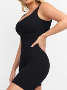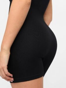 1. Double-layer removable pads on bra for your bra-less style. 2. Tighter fabric on waist and abdomen panel to increase body-con fit.