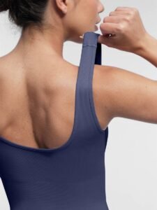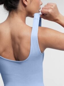 1. The front square neck design shows the charming collarbone on the shoulders and neck; the back U-shaped back design shows the sexy curve of the back;