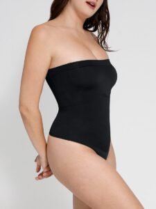 2. Removable shoulder strap design, the fabric of the strapless body shaper is elastic, soft and light, and skin-friendly. The two steel bones on the side are firmly fixed to the body and prevent curling;