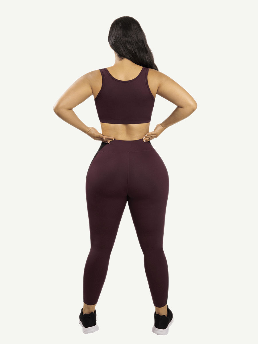 2. Wine red and black splice pants